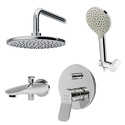 Комплектацияручной душ (душевая лейка), верхний душ (тропический), смеситель, излив, душевой шланг, крепление ручного душа, настенный кронштейн