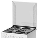 Тип конфорок: газовые • Рабочая поверхность: эмаль • Тип духовки: электрическая • Размеры (ШxВxГ): 600x850x600 мм • Цвет: белый • Газовые конфорки: всего - 4 • Объем духовки: 50 л • Гриль: есть, электрический • Подсветка: есть • Вертел: есть • Мультифункциональная духовка: есть • Количество режимов работы духовки: 5 • Тип управления: механическое • Переключатели: поворотные • Таймер: звуковой • Электроподжиг: есть