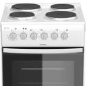 Тип конфорок: электрические • Рабочая поверхность: эмаль • Тип духовки: электрическая • Размеры (ШxВxГ): 500x850x560 мм • Цвет: белый • Конфигурация электрических конфорок: 2 x 1000 g 2 x 1500 g • Электрические конфорки: всего - 4 • Объем духовки: 50 л • Количество режимов работы духовки: 5 • Тип управления: механическое • Переключатели: поворотные • Ящик для посуды: есть