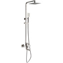 Общие характеристики Тип душевая стойка Материал стойки нержавеющая сталь Покрытие нержавеющая сталь Особенности Количество режимов верхнего душа 1 Тропический дождь есть Форма верхнего душа квадратная Количество режимов лейки 1 Монтаж Способ монтажа настенный Комплектация Смеситель однозахватный Излив для наполнения ванны есть Верхний душ есть Ручной душ (лейка + шланг) есть Держатель для душевой лейки штанга Габариты Высота стойки для душа 1250 мм Верхний душ (ДхШ)