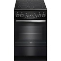 Тип конфорок: электрические • Рабочая поверхность: стеклокерамика • Тип духовки: электрическая • Размеры (ШxВxГ): 500x850x585 мм • Цвет: черный • Электрические конфорки: всего - 4 (1 двухконтурная) • Объем духовки: 52 л • Конвекция: есть • Гриль: есть, электрический • Очистка духовки: традиционная • Подсветка: есть • Вертел: есть • Тип управления: электронное • Переключатели: поворотные, сенсорные • Дисплей: есть