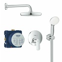 включает в себя: Eurosmart Cosmopolitan set for final installation with automatic diverter bath / shower (24 045) GROHE Rapido SmartBox Универсальная встраиваемая часть, 1/2" (35 600) Tempesta 210 верхний душ (26 410) Rainshower Душевой кронштейн 286 мм (28 576 000) ручной душ Tempesta 100, 2 вида струй, 9,5 л/мин (27 597) подключение для душевого шланга (28 628) Rotaflex душевой шланг 1500 мм 1/2" x 1/2" (28 409)