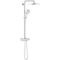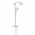 Устройство: душевая система • Смеситель: термостатический • Ручной душ (душевая лейка): размер 130 мм, настройки 3 шт • Верхний душ (тропический): размер 310 мм, настройки 1 шт • Комплектация: ручной душ, верхний душ, смеситель, стойка, шланг, крепление ручного душа