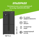 отдельностоящий • полный No Frost • сенсорное управление • класс A++ • полезный объём: 541 л (376 + 165 л) • инверторный компрессор • зона свежести • подставка-лоток для бутылок • лоток для яиц • 90.8x75x182 см • антрацит