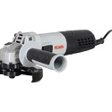 Шлифмашина угловая Интерскол УШМ-125 / 1100Э выполняет работы разной сложности и удобно помещается в руке. Её электродвигатель выдает мощность 1100 Ватт, а максимальная частота вращения составляет 3000-10000 оборотов в минуту. Большой диапазон вращения можно регулировать, тем самым под разные работы подобрать оптимальную частоту вращения. Диаметр диска 125 мм, а посадочного отверстия 22 мм. Прибор выполнен в серебристом либо черном цвете, отличительной чертой этой машины является ограничение пускового тока, дополнительная рукоятка, пылесборник. Работает инструмент только от сети, а его вес составляет 2.2 килограмма. В комплекте идет основная машина, инструкция по использованию, советы безопасного пользования. Также имеется защитный кожух, боковая ручка, регулировочный удобный ключ, гайка для крепления, опорный фланец круга и сам шлифовальный круг. Прибор уверенно работает на разных скоростях, а срок службы превышает пять лет.