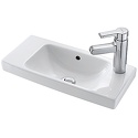 Коллекция: Odeon Up; Изделие: раковина; Ширина: 50 см; Глубина: 22.5 см; Высота: 14 см; Подвесная установка: да, возможна; Установка на мебель или столешницу: да, возможна; Тип раковины: рукомойник (мини-раковина); Установка на пьедестал или ножки: нет, не возможна; Установка на полупьедестал: нет, не возможна; Угловая конструкция: нет; Перелив: есть; Кол-во отверстий: с 1 отверстием; Материал изделия: фарфор; Число чаш: 1 чаша; Крепление в комплекте: нет; Форма: прямоугольная; Стиль: современный стиль (Hi