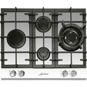 Поверхность: варочная панель • Тип поверхности: газовая • Рабочая поверхность: керамика • Число конфорок: 4 • Установка: независимая • Газовые конфорки: всего - 4 (1 конфорка "Тройная корона") • Газ-контроль конфорок: есть • Тип управления: механическое • Переключатели: поворотные • Электроподжиг: есть, автоматический • Размеры: 580x510x40 мм • Размер ниши для встраивания: 560x490 мм