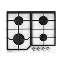 Поверхность: варочная панель • Тип поверхности: газовая • Рабочая поверхность: закаленное стекло • Число конфорок: 4 • Установка: независимая • Газовые конфорки: всего - 4 • Тип управления: механическое • Переключатели: поворотные • Электроподжиг: есть, автоматический • Размеры: 600x510x95 мм • Размер ниши для встраивания: 560x480 мм • Цвет: панель - белый