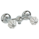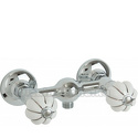 Назначение: душ • Конструкция: двухрычажный • Монтаж: вертикальный • Материал: латунь, покрытие - хром • Подводка: жесткая • Монтажные отверстия: 2 отверстия • Душевая лейка в комплекте: нет • Эксцентрики в комплекте: есть