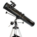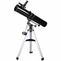 Рефлектор Ньютона на экваториальной монтировке. Данная модель ориентирована на визуальные наблюдения объектов дальнего космоса. В комплект входят окуляры 25 мм и 10 мм. Монтировка снабжена механизмами тонких движений. К алюминиевой треноге крепится лоток для аксессуаров.