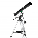Ахроматический рефрактор с 80-миллиметровым объективом. На оптические поверхности нанесено многослойное просветляющее покрытие. Эта модель предназначена для изучения объектов Солнечной системы. Оптическая труба устанавливается на экваториальную монтировку EQ2 с механизмами тонких движений по обеим осям. Высота треноги регулируется.