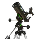 Компактный зеркально-линзовый телескоп, собранный по схеме Максутова-Кассегрена. Диаметр объектива составляет 90 мм. В комплект входят окуляры 10 мм и 20 мм. Оптическая труба устанавливается на экваториальную монтировку. Алюминиевая тренога обеспечивает устойчивое положение телескопа.