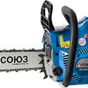 Производитель: СОЮЗ Модель: ПТС-99371 - вес: 5.10 кг - шаг цепи: 3/8 дюйма - длина шины: 40 см - мощность: 2.7 л. с. - бензопила Описание