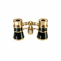 Театральный бинокль с витой цепочкой. Обладает 3-кратным увеличением и 25-миллиметровыми объективами. Корпус бинокля выполнен в элегантном дизайне черного цвета с золотистыми элементами.